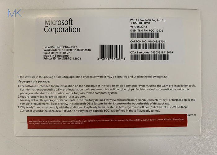Microsoft OEM Sistem Üreticisi Windows 11 Professional OEM 64-bit OEI DVD İngilizce 22H2